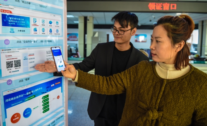 在河北省深州市行政审批局,一名市民进行企业登记实名验证(11月26日摄)。新华社记者 李晓果/摄