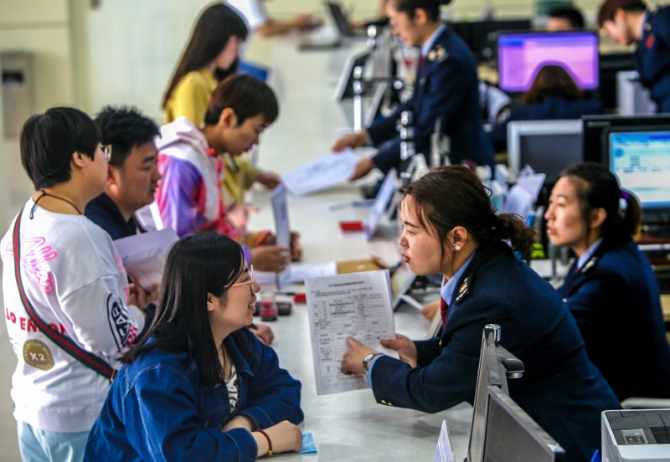 在河北省饶阳县涉税分中心,窗口工作人员为民营企业家讲解简便纳税流程(5月6日摄)。新华社记者 李晓果/摄