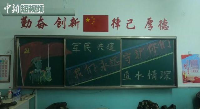 黑板上一句句温暖的话语让官兵们深受感动,不仅感受到孩子们的热情,他们内心对军人的尊敬和向往更值得欣慰。