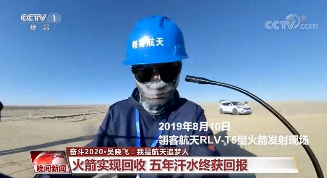 2019年8月10日上午10时35分,在青海茫崖市冷湖火箭试验基地,伴随着发动机的轰鸣声,翎客航天RLV-T5型火箭从地面快速起飞,上升至300米后快速下降并稳稳着陆在试验场中心。这群年轻的工程师们,五年的汗水终于收获回报。