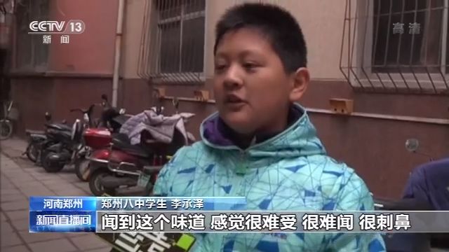 郑州八中七年级学生 李承泽:到那个门洞的时候,感觉这个味道很难受、很刺鼻。