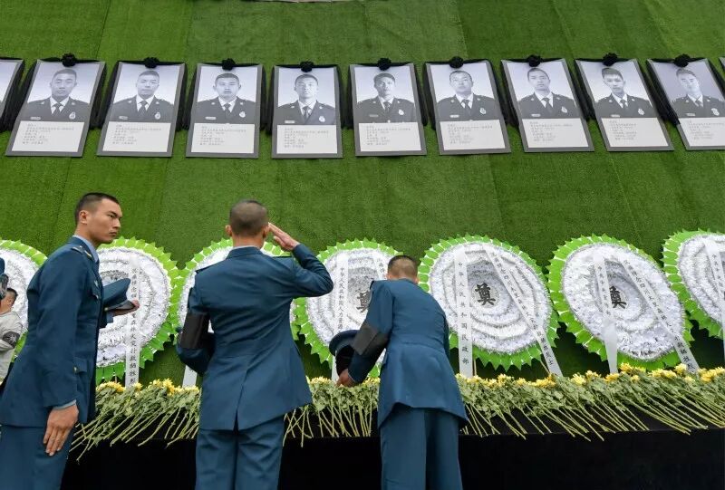 2019年4月4日,参加四川木里森林火灾扑救中英勇牺牲烈士悼念活动的官兵悼念牺牲的战友。新华社记者 张超群 摄