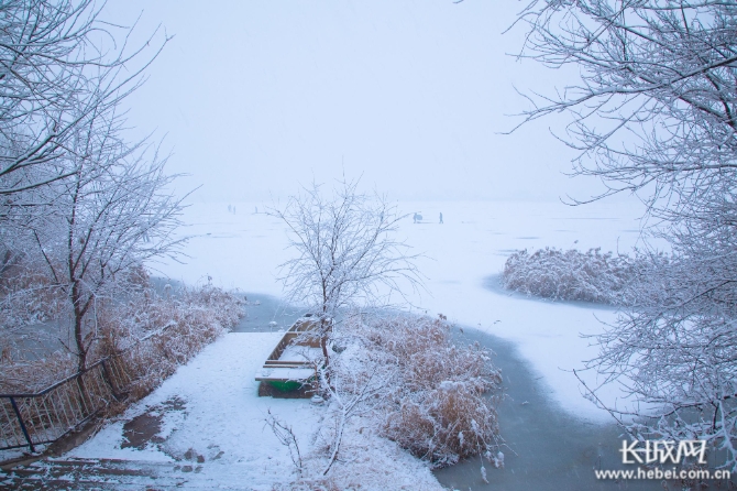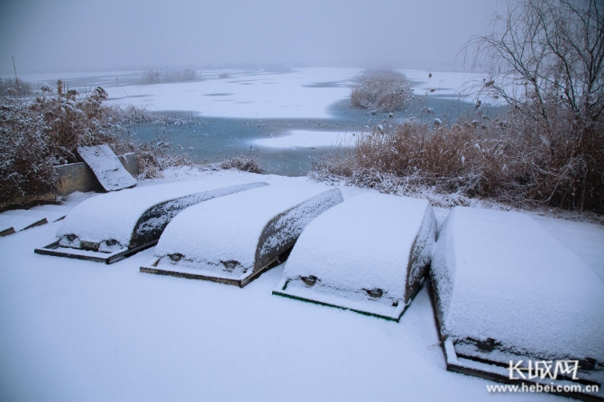 一场降雪过后,衡水湖在皑皑白雪的映衬下,格外迷人,宛如童话世界一般。游人踏入落雪渲染的梦幻世界,似走进一幅水墨画卷。湖面、船只、大地都覆盖着白雪,放眼望去,衡水湖一片银装素裹,唯美、梦幻。