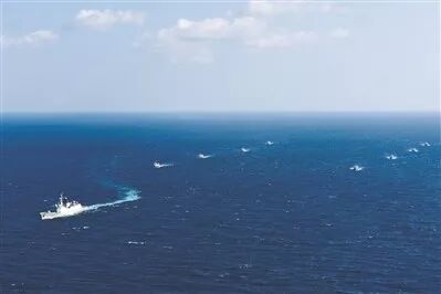 △潍坊舰为我8艘渔船进行伴随护航。解放军报特约记者 王冠彪/摄