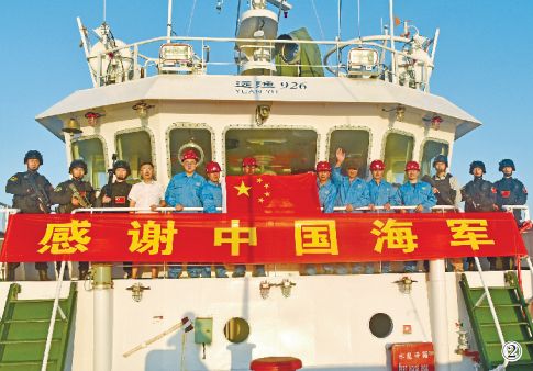 “感谢祖国,感谢海军!”“远渔926”号船长柴国宽激动地说:“这是我第一次带领船员经过亚丁湾,也是第一次亲历祖国海军护航,能够切身感受到祖国强大带来的安全和便利,我们感到非常自豪!”