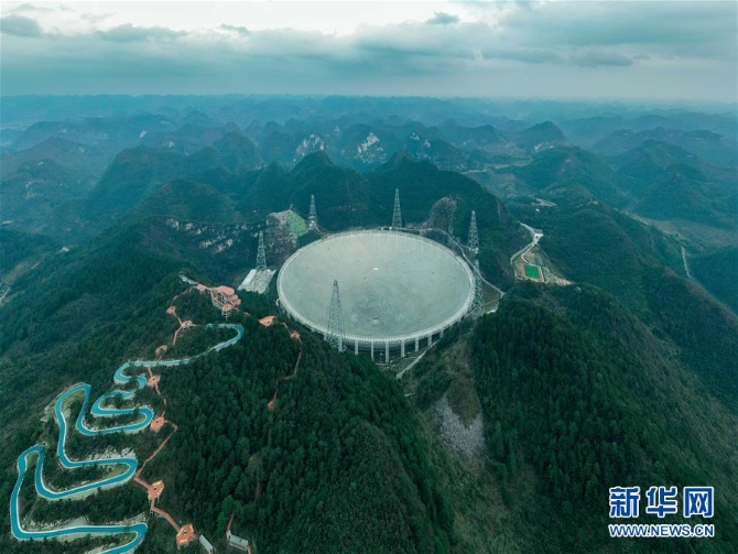 1月8日拍摄的“中国天眼”全景(检修期间拍摄)。 新华社 记者欧东衢 摄