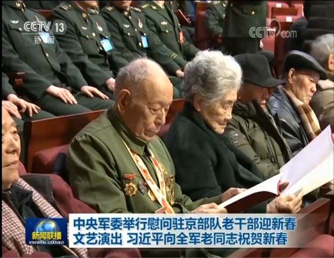 中央军委慰问驻京部队老干部迎新春文艺演出13日在京举行。中共中央总书记、国家主席、中央军委主席习近平,向在座的军队老同志和全军离退休老干部致以节日问候和新春祝福。