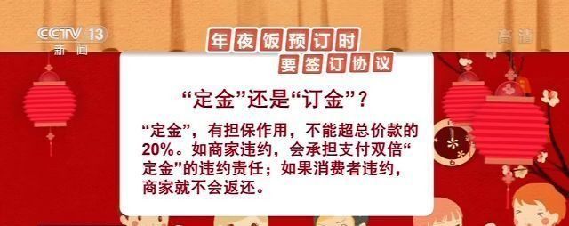 此外,还有商家在“定金”上做文章。有很多餐厅会在消费者预订年夜饭时收取一笔定金,且声明定金不退。一旦消费者临时改变计划,如果商家不退款,消费者就只能吃“哑巴亏”。