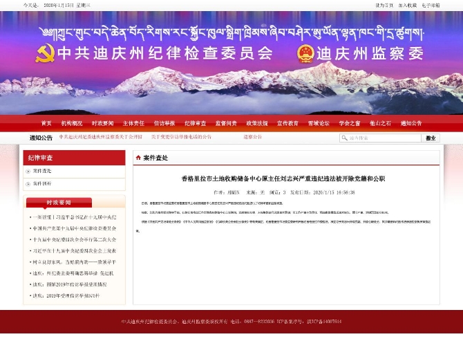 涉嫌严重违纪违法 香格里拉市土地收购储备中心原主任刘志兴被双开