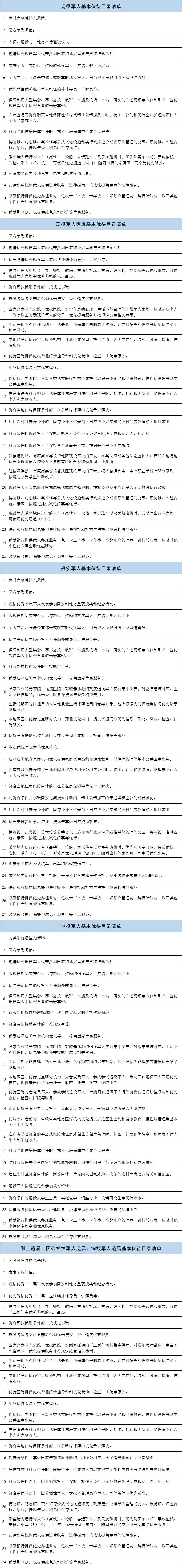附:军人军属、退役军人和其他优抚对象基本优待目录清单