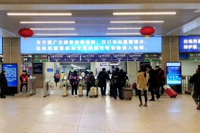 春运期间,汉口站试点推行安检“一体化”。在汉口站下车的铁路旅客选择换乘地铁,下车后在出站口有专门通道前往地铁进站厅,无需在地铁站进行二次安检,就可直接乘坐地铁出行。