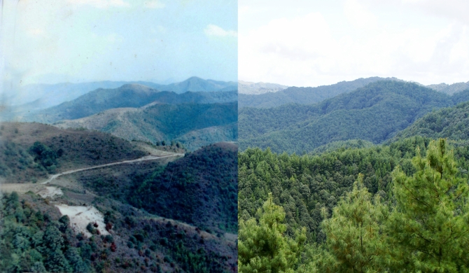 保山市龙陵县昔日的荒山秃岭(对比图)