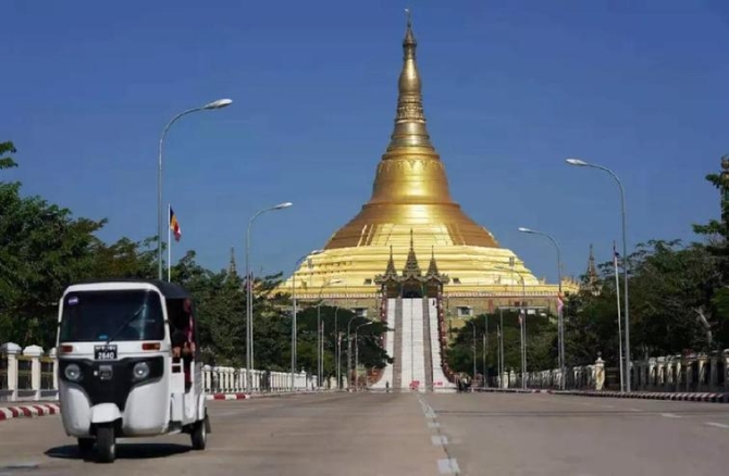 这是内比都大金塔,为当地地标建筑物。缅甸是著名佛教国家,佛塔众多,有“佛塔之国”的美誉。新华社记者王申摄