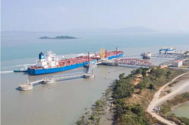 1月13日,一艘油轮停靠在缅甸马德岛中缅油气管道项目卸油码头,准备卸载石油。这是“一带一路”倡议在缅甸实施的先导项目。2017年4月10日,中缅领导人在北京共同见证了多领域双边合作文件的签署。新华社记者杜宇摄