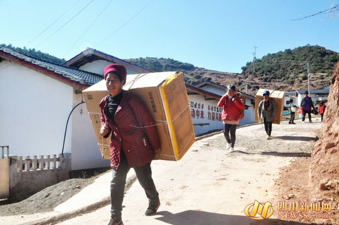 1月15日,大凉山深处,昭觉县解放乡火普村的青山被冬日的暖阳笼罩。一大早,火普村委会大院里就热闹起来,村民们浑身热火火的,脸上都泛着幸福的笑容。原来,这里正在举行火普村道德银行积分兑换仪式,村里拿出去年村集体收入的一部分,用于发放村民们的“年终奖”,奖品包含洗衣机、毛毯、床上四件套、面盆、毛巾等。