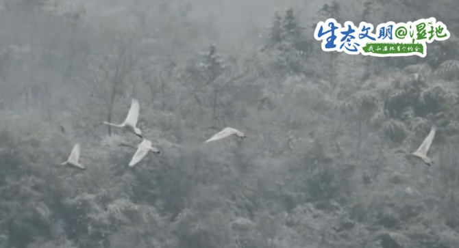 【生态文明@湿地】候鸟在漫天雪花中飞舞如在画中 尽显东淠河湿地别样美