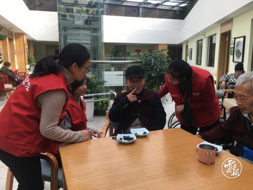 启动仪式结束后,有3名志愿者接到了服务请求,于是来到官渡区养老综合服务示范中心日间照料中心,开启自己的第一次服务记录。吕大爷眼睛不太好,而他又非常关注每天的报纸新闻,志愿者们找来了一份当天的报纸,给他阅读并陪他聊天;章大爷患有帕金森综合症,行动不能自理,志愿者们给他做心理疏导,喂他吃水果和开水……完成服务后,3名志愿者各自得到1小时的服务时长,并存入自己的“时间银行”存折。