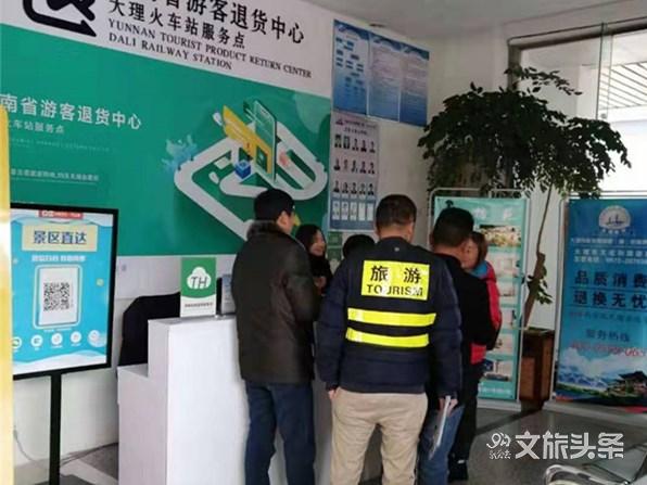 近日,省外游客一家三口来大理旅游,在大理古城购买了价值39800的玉石饰品后,乘坐动车去昆明转车回省外,途中对购买的玉石饰品不满意想要退货,便搭乘最早一班动车返回大理。下车时刚好看到身着黄色马褂的旅游执法工作人员,便询问退货地址,由于游客时间紧,着急返程回家,工作人员便在大理站退(换)货处置中心帮忙办理了退货手续。