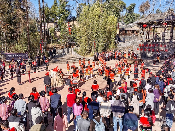 △司莫拉佤族村村民跳起欢快的佤族舞蹈。(总台央视记者韩锐拍摄)
