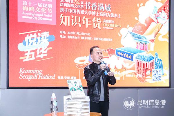 昆明信息港讯 记者李红鸾 2020年1月22日,第十三届昆明海鸥文化节在新华书店昆明书城四楼阅读区举行了“悦读五华•书香满城”读书会,携手中国传媒大学博士、云南财经大学硕导高阳老师现场分享《从莎草纸到互联网-社交媒体简史》一书,与读者一同谈论社交媒体在历史演变中给我们生活带来的影响和启发,在春节来临之际,为大家奉上了一份启迪思想、启迪智慧的“知识年货”。