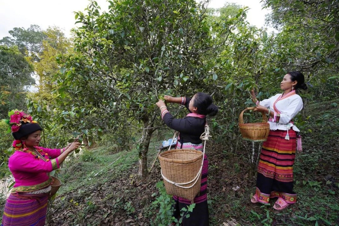 布朗山布朗族乡老曼峨寨村民在采摘古树茶。