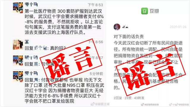 武汉市红十字会呼吁广大网友,不要让谣言玷污了各界爱心企业和爱心人士的善意之举,疫情面前,不信谣、不传谣,众志成城,共渡难关。
