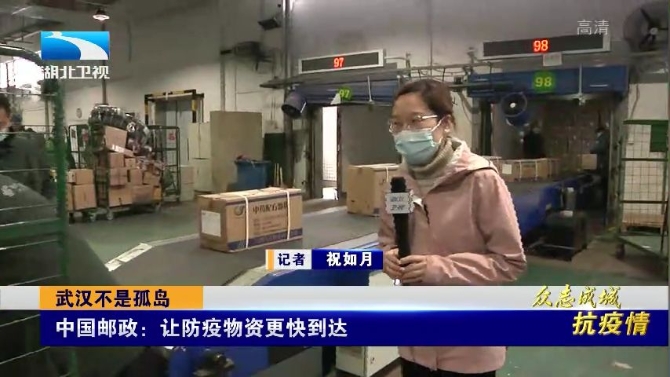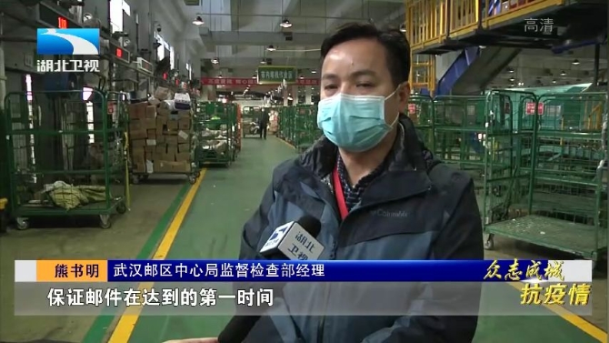 武汉邮区中心局监督检查部经理 熊书明:对这种物资(防疫物资),从发运我们就进行监控,根据邮件的到达情况,保证邮件达到的第一时间,优先进行处理,优先进行发运。