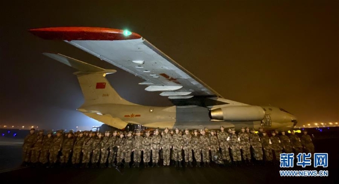 1月24日晚,由陆军军医大学抽调精干医务人员组建的医疗队在重庆江北国际机场停机坪集结,准备连夜驰援武汉。新华社发
