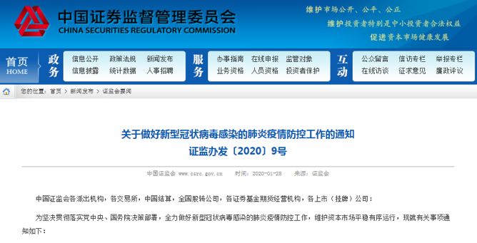 证监会28日发布《关于做好新型冠状病毒感染的肺炎疫情防控工作的通知》,要求涉及疫情防控急需的药品、防护服、口罩等各项物资生产和供应的相关上市(挂牌)公司,按照政府相关部门的要求,做好生产经营安排,全力保障市场供应,以实际行动支持防控工作。