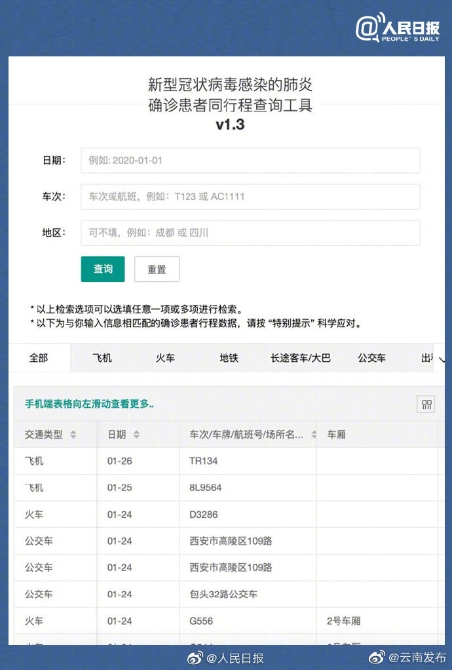 昆明信息港讯 机器人小明 【转发收藏!#确诊患者同程查询工具#来了】只要输入日期、车次和地区等信息,即可查询到对应行程是否与已披露的确诊患者同行,进而科学应对,早预防、早隔离、早救治。戳→网页链接抗击疫情,我们在一起!@人民日报