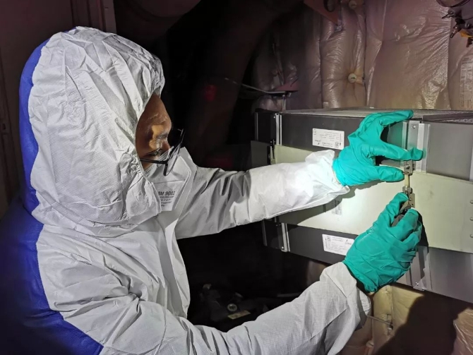 航后清洁:使用消毒剂擦拭客舱门周边、小桌板、扶手及洗手间等乘客接触较多的区域。每天航班运行结束后对飞机做预防性消毒。