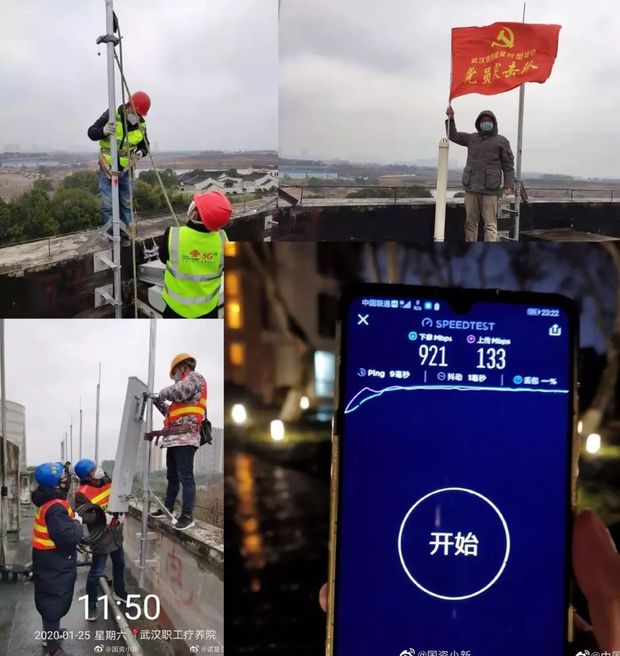 中国电信、中国联通、中国移动、中国铁塔、中国信科、诺基亚贝尔等负责建设的火神山医院5G基站挂站开通。在36小时内完成了一个全新基站从查勘、规划、设计到施工、调测、开通、优化的全过程,现场已经可以稳定接收5G信号!