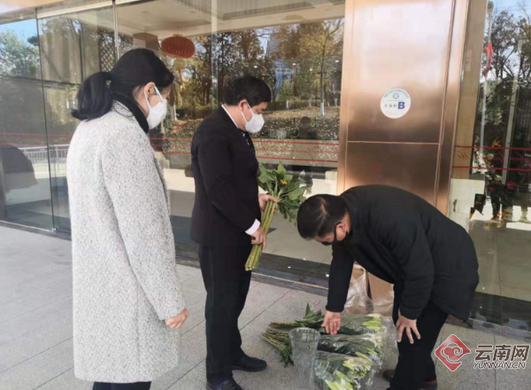 随后,鲜花商城负责人耐心指导酒店服务员如何对鲜花进行修剪、插瓶。一瓶瓶黄灿灿的向日葵花束由服务员送到了外省游客的50个房间内。与鲜花一同送进房间的,还有昆明市工商联和湖北荆州商会送来的水果、呈贡区区文化和旅游局送来的口罩。
