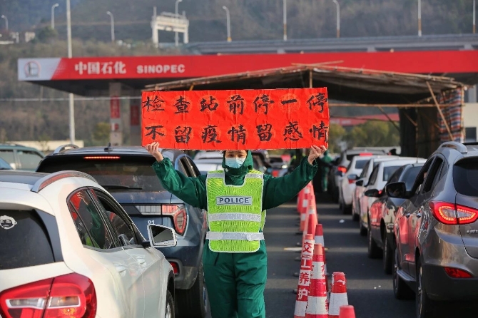 舟山是浙江省东北部的一个岛城。而舟山跨海大桥,则是自邻近城市宁波入岛的唯一通道。自然而然地,跨海大桥的金塘高速服务区就成为了舟山市防控疫情最重要的一道防线。为此,舟山市派出了卫健委工作人员、公安干警、交警和志愿者等组成的联合团队,在金塘高速服务区设立了疫情检查站。