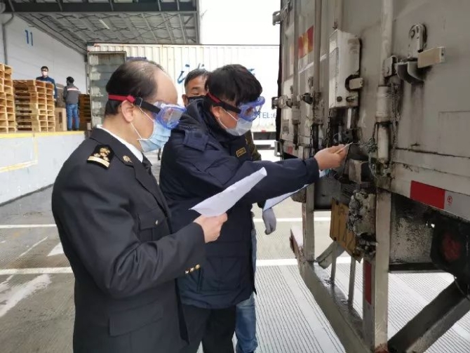 2月6日早6时30分,大连海关所属鲅鱼圈海关关员已到达营口港59号泊位整装待命。7时30分,载有三个集装箱防疫物资的“紫丁香”轮前脚刚安稳抵港,鲅鱼圈海关就已完成了货物抵港报审批,不到50秒就完成了两票货物的放行工作。此时,企业运输车辆也早已“集结”完毕。十分钟内该批货物全部装车启运,实现“海陆运输零延时”,火速送往“战疫前线”。据悉,该批物资总重4.3吨、价值172万元人民币,包括口罩99,000个、护目镜2,000副、防护服9,200件及一次性鞋套9,000个。