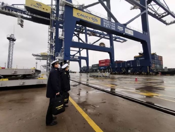 2月7日上午9时30分,靠泊在宁波舟山港大榭招商国际码头的“高丽卡拉”轮开始进行卸船作业,其中,就有11个集装箱、125万个来自境外的一次性非医用防护口罩。宁波海关快速响应,利用 “船边直提”作业模式,将装载口罩的集装箱自进境船舶直接吊装至运输车辆,实现从货物卸船到运输车辆驶离码头的港口提货作业“零延迟”。