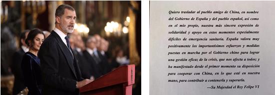 西班牙国王费利佩六世表示,高度赞赏中国政府为有效防控疫情付出的巨大努力和采取的切实措施。西方愿尽己所能同中方合作,为遏制和战胜疫情作出贡献。