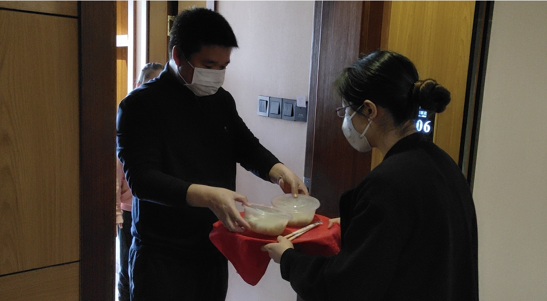昆明信息港讯 通讯员赵玥 2020年2月8日正值元宵佳节,上午一大早,在昆明市呈贡区的云桢花园酒店内,工作人员们将一碗碗热气腾腾的汤圆分别送到了在酒店居住的滞滇旅客、以及在酒店24小时值守的工作人员们手中,希望身在异乡的旅客们能够受感受元宵佳节的温暖和问候,同时也为一直坚持值守的工作人员们加油鼓劲。