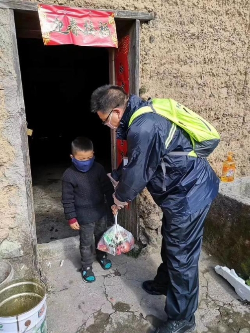 晚上回到家后,杨律俊怎么也忘不了孩子望着他的眼神。次日一大早,他带上小朋友们最喜欢的水果、牛奶、饼干,又去了一趟小男孩的家里,将准备的“小礼物”送到孩子手中,并告诉他不要害怕,要听奶奶话、乖乖待在家里。
