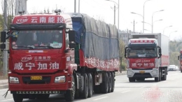 听到记者打电话,一位正在旁边休息的曲靖货车司机主动告诉记者:“他们应该也快到了,今天一大早我们车队在高速公路上还遇到了他们大理的车队,还碰到了丽江的车队,都是拖物资来咸宁的。”
