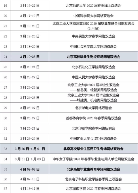 2020届高校毕业生网络双选会系列活动部分场次安排表