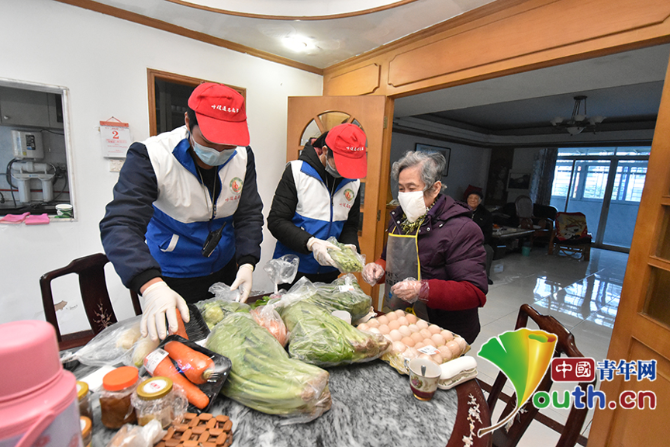 志愿者帮老人买好日常所需的食材并送到家中。受访者供图