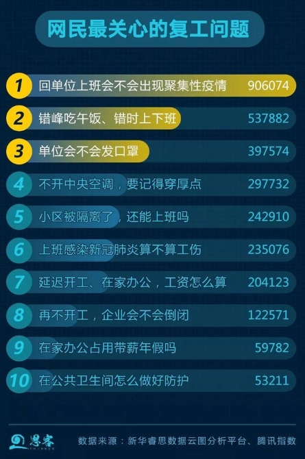平衡好防疫与工作,是网民最关心的问题,“错时上班”“单位发放口罩”等成为网民主要诉求。深圳大学日前发布的研究报告称,错时上班能有效降低深圳病毒风险指标,其中双批错峰(一半提前1小时上班,一半正常上班)相对收益增加最明显。