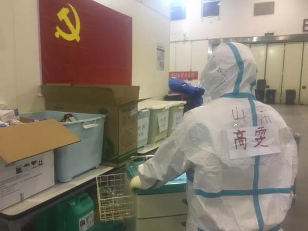 讲述者:高雯 北大医疗鲁中医院神经内科护士2020年2月7号,我剪去了我的长发今天一早就有专车接我们去了临近金银潭的武汉客厅,这里即将是我们的战场。此刻的武汉客厅布置的已经井井有条,清洁区、污染区划分的也很清楚,这里可容纳1000人。带队讲解的老师像妈妈一样,事无巨细的向我们讲着需要注意的事情。此刻的我终于有了一丝紧张的情绪,同行的晓培姐说到:“跟上来。”是啊,自始至终我也不是一个人,我还有同行的像姐姐一样照顾我的唐晓培护士长,我还有这么多的护理姐妹呢!回到酒店,便开始了防护措施的练习,晚上爸妈还有我的宝宝打来了视频电话,他们是我在出发前一想到就会哭的人,此刻却可以笑着面对她们说我很好,不要担心。宝宝说想和我在一起,我听到时,心里还是一颤,大约有半个月没有抱抱宝贝儿了,能不想吗?但嘴里还是要说着安抚的话!宝贝等你长大了,我会带你来武汉看樱花,那个时候会给你讲妈妈的故事,而这个事情我希望是妈妈自己来做!晚上10:00晓培姐帮我剪去了长发,她开玩笑的说,一剪子十块!听着咔嚓咔嚓声,我说你可不要坐地起价呦。她总是这么照顾我,从生活到情绪。我真的是傻人有傻福啊!
