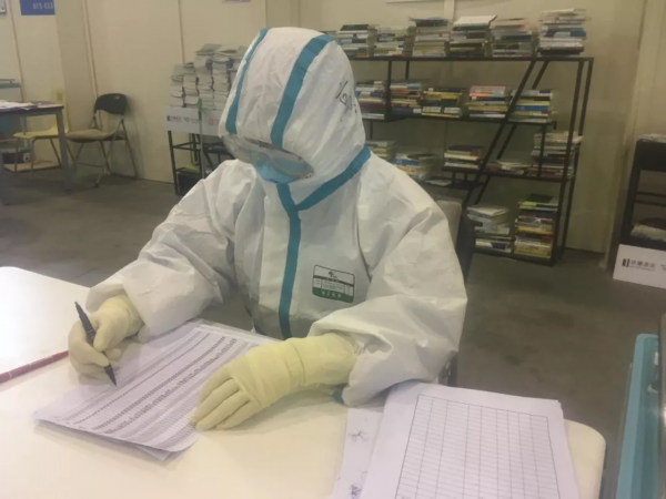 2020年2月9号 12:30我收到了第一次进舱的任务!我们进舱啦!中午还没有吃完饭,就收到了队长安排进舱的通知,我们五个人:唐晓培,高雯,陈琳琳,王睿,王泗元。因为是随时待命,所以我们提起物品就走了。经过四十分钟的车程,到了地方以后换好衣服就进舱了。一开始,病人们入院比较急切,工作刚开始,并没有经过过多培训的我们就在慌乱中接岗了,经过分工,我们开始有序开展工作。我们负责B舱,里面又分为AB两个厅,男女是分开的。经过六个小时奋斗,我们AB厅接收了218个病人。方舱里的病人大多客气,听从安排。极少数用我们不懂的语言着急的需要医生护士的帮助。看到他们,我才觉得生活是多么不容易,以前的简单日子是多么幸福。整个工作过程中,防护服里热了冷,冷了又热,一层一层的汗把里面的衣服都湿了一遍,耳朵上被口罩勒的像刀割一样疼痛,可是当病人有需要的时候,我们又义无反顾的,忘记了这些不适,一旦为他们服务起来,责任与使命驱使我们前进。下班回宾馆的路上,眼泪不自主的流着,不是因为自己多么累,而是觉得病毒无情,让这么多人患病,让这么多家庭变得支离破碎!我一定要通过自己的努力去让他们恢复健康!疫情不散,我们不走!大家一定要加油啊!