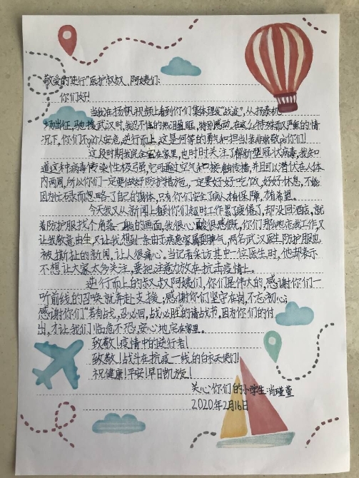 这些书信,有的是写给在武汉抗疫一线工作的亲人,叮嘱妈妈要“保重身体”:“妈妈,您一定要答应我,要保重身体,注意休息,在救护他人的同时一定要保护好自己,我们在家等您。”