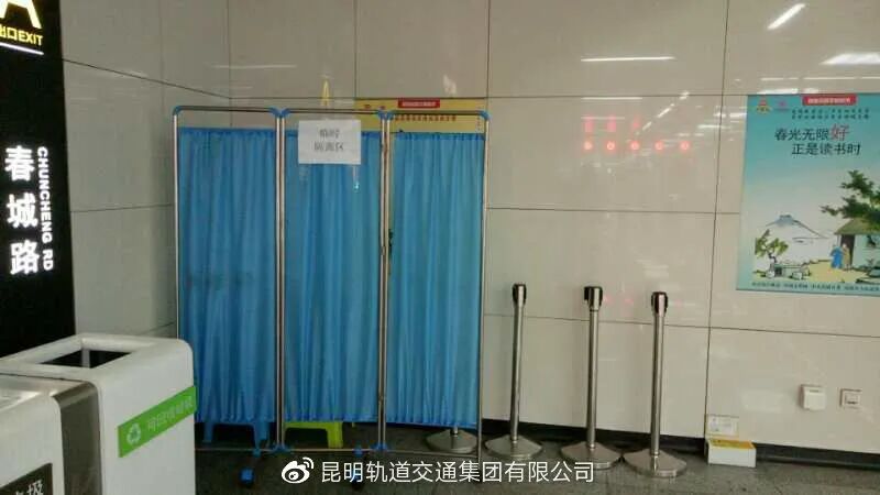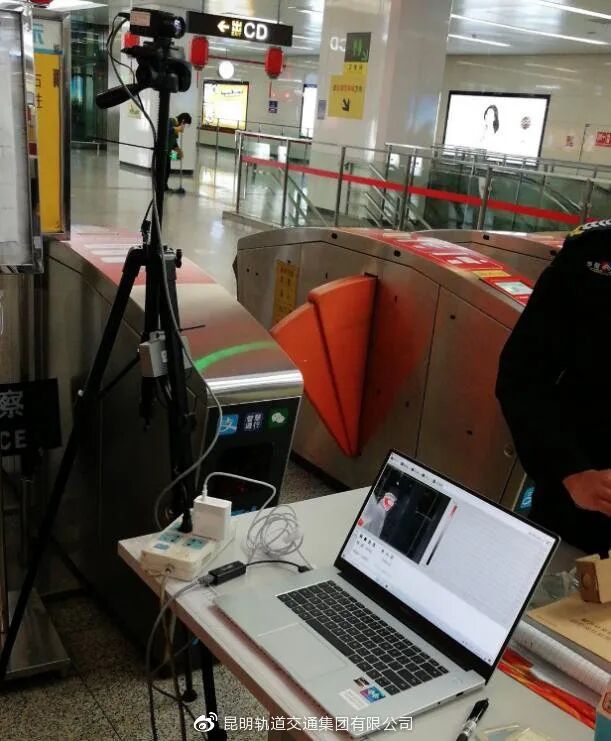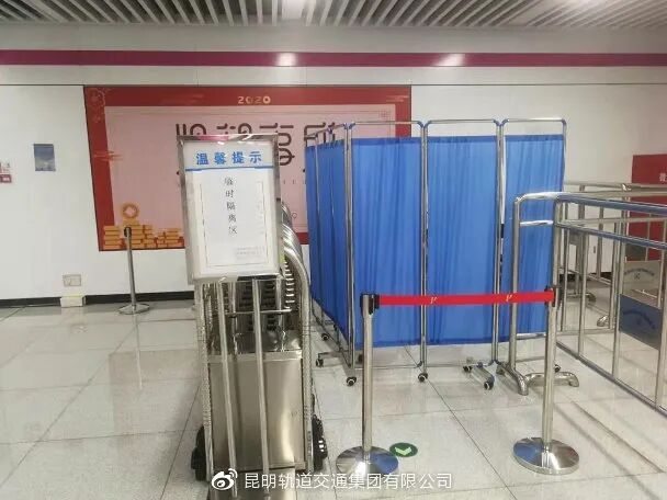 昆明地铁在昆明南火车站、大学城南站、东风广场站、环城南路站、五一路站、机场中心站等21个站点,新增25台红外体温检测仪,提升筛查发热人员速度,进一步提高乘客进站测温效率。