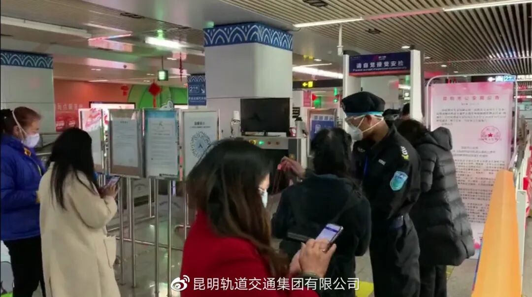 27个车站出入口、安检机旁、站内立柱等显眼位置均张贴有“云南抗疫情”小程序码,车站工作人员、安保、安检人员齐上阵,增员引导乘客扫码。