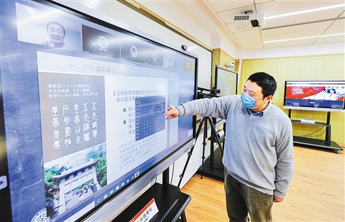 在北京大学网络教学指挥调度中心,教务人员利用“监课管理系统”,查看一名老师在家中为学生在线远程授课时学生的出勤情况。 (新华社发)