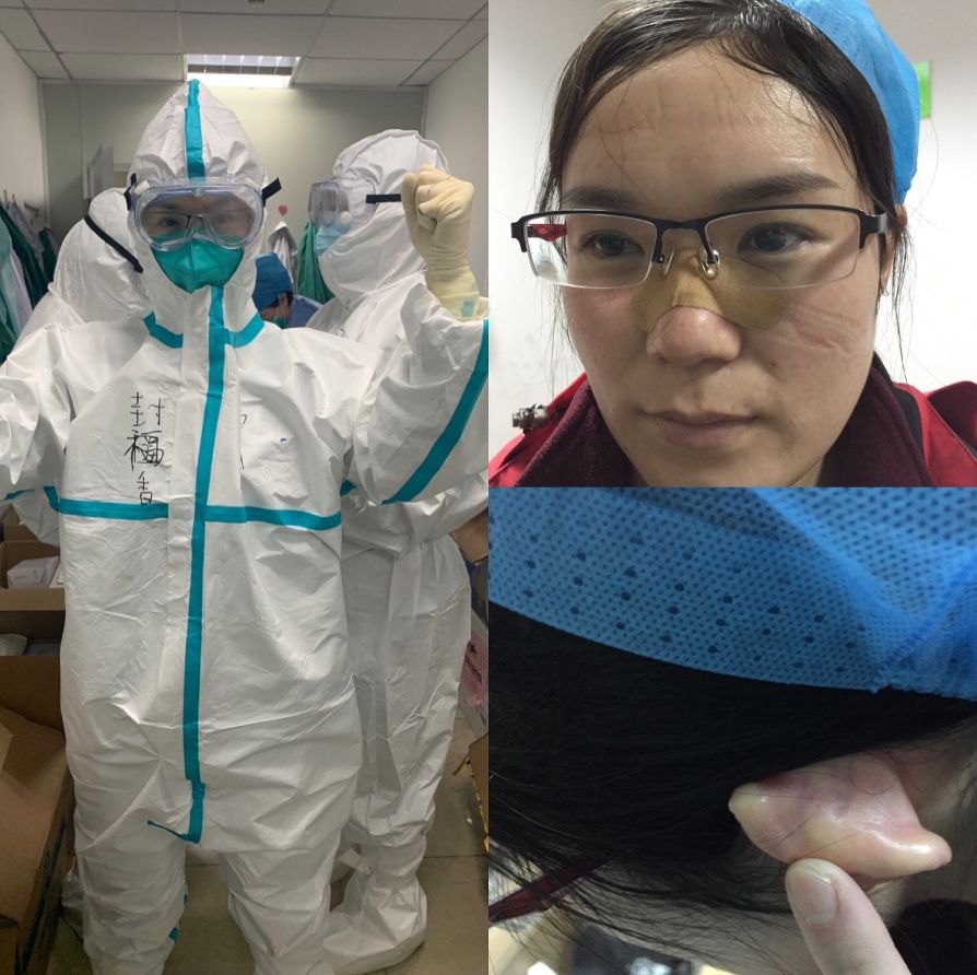 09:00,当我们轮流从缓冲区严格按照流程脱防护服出来,看着额头上鼻子上脸上的压痕,想到我们这20多天的奋斗,想到患者的笑脸,便洗去了我们一身的疲惫。我们只有一个目标:希望所有人都能平平安安出院,希望早日看到樱花盛开的武汉!